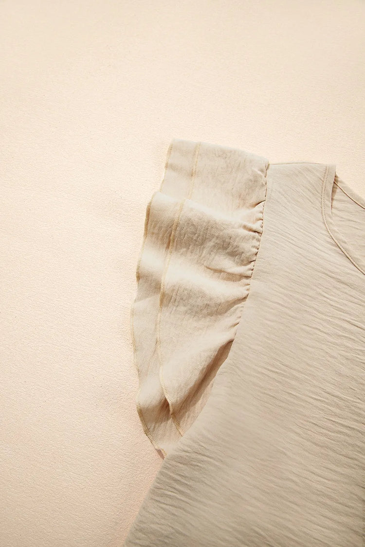 Solid Color Ruffled Short Sleeve Casual Blouse