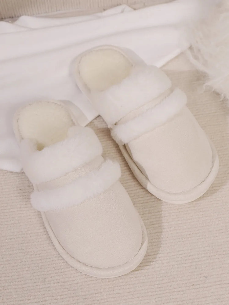 Contrast Faux Fur Round Toe Slippers